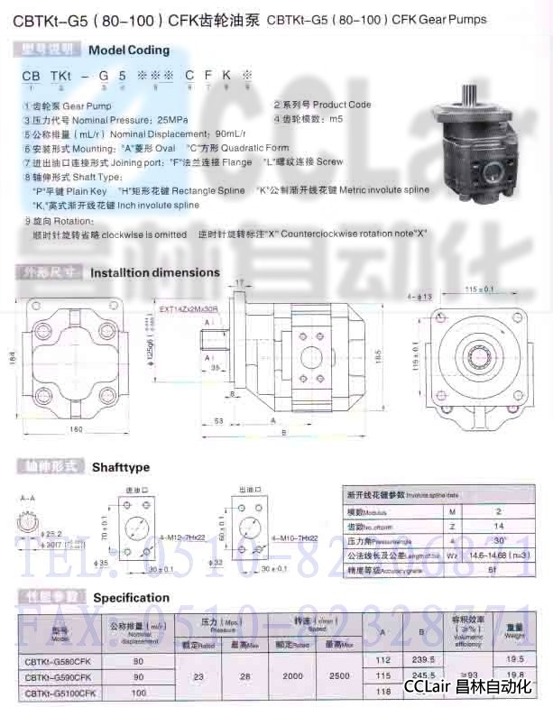 CBTKt-G580CFK,CBTKt-G590CFK,CBTKt-G5100CFK,齒輪油泵