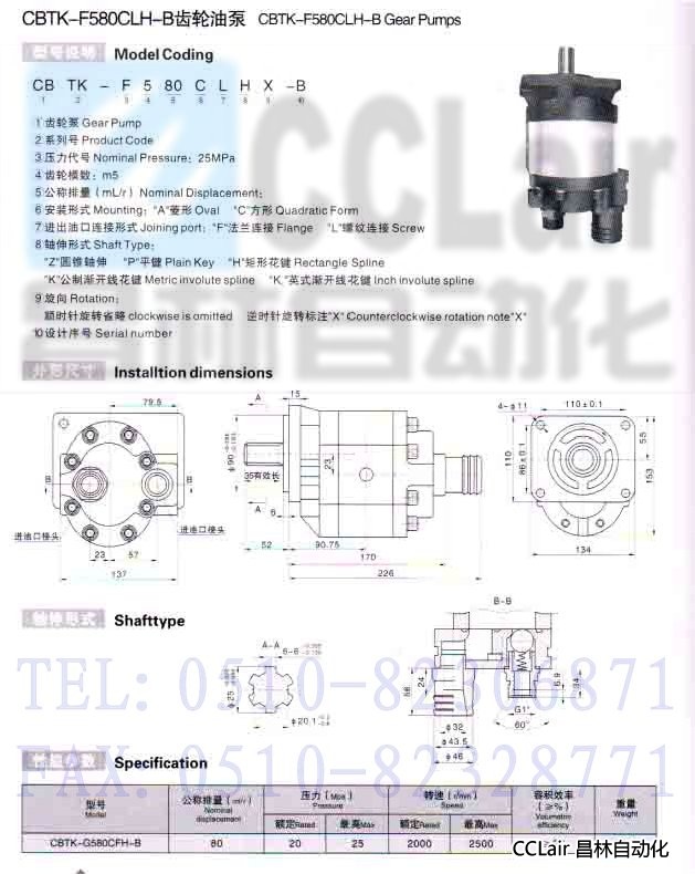 » CBTK-G580CLH-B,齒輪油泵