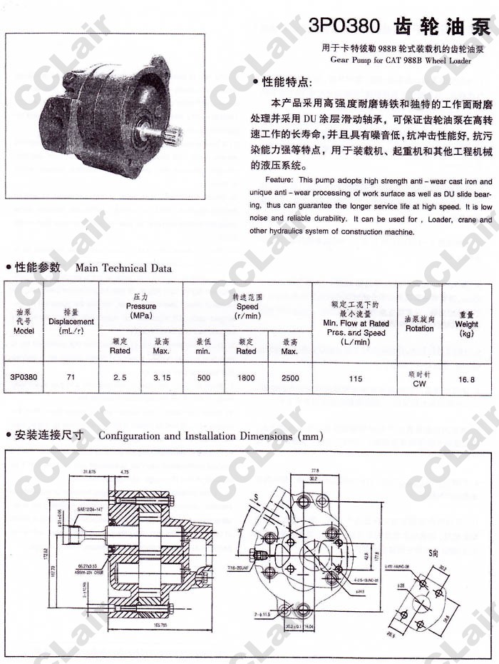 型號: 3P0380,齒輪油泵,YUCIYUKEN