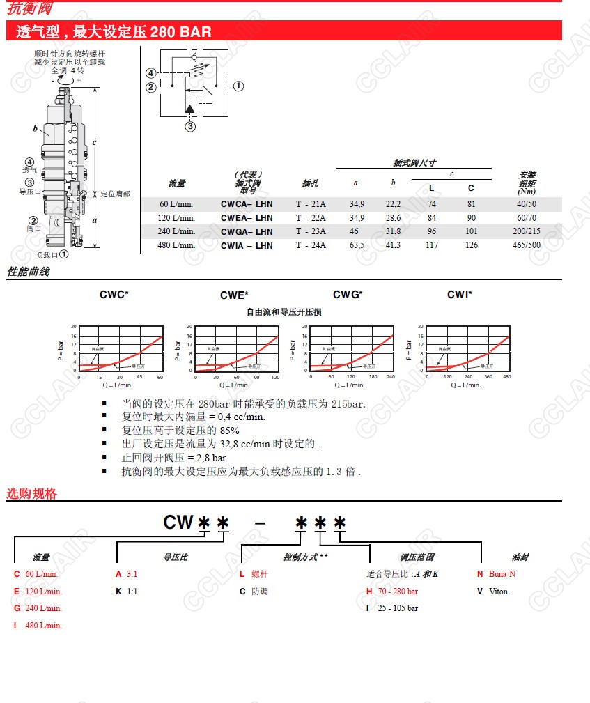CWGK-LHN,CWIK-LHN,CWCK-LIN,CWEK-LIN,CWGK-LIN,CWIK-LIN,CWCK-CHN,CWEK-CHN,CWGK-CHN,CWIK-CHN,CWCK-CIN,CWEK-CIN,CWGK-CIN,CWIK-CIN,透氣型,較大設(shè)定壓280 Bar抗衡閥