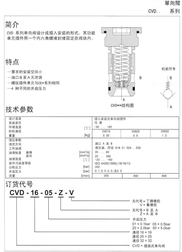 詳細(xì)信息 CVD-16-01,CVD-25-01,CVD-32-01,CVD-16-05,CVD-25-05,CVD-32-05,CVD-16-20,CVD-25-20,單向閥