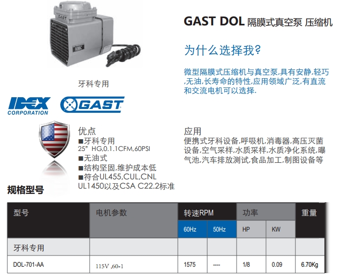 DOL-701-AA,隔膜式真空泵/壓縮機