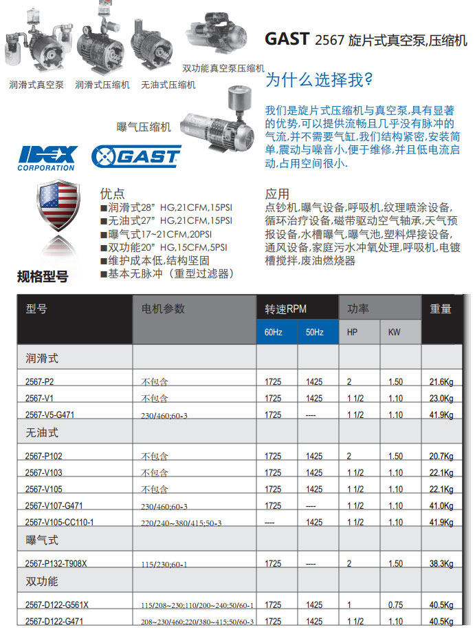 2567-P2,2567-V1,2567-V5-G471,2567-P102,2567-V103,2567-V105,旋片式真空泵/壓縮機(jī)