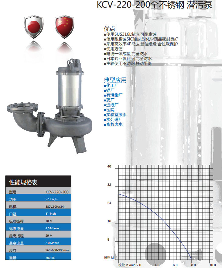 您當(dāng)前的位置:首頁 » 產(chǎn)品&解決方案 » KCV-220-200,全不銹鋼潛污泵