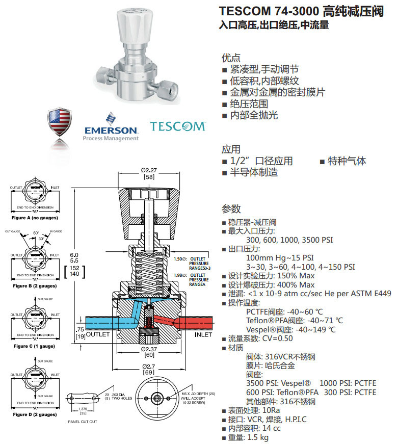 74-306-A,74-306-0,74-306-1,74-306-2,74-306-3,高純減壓閥