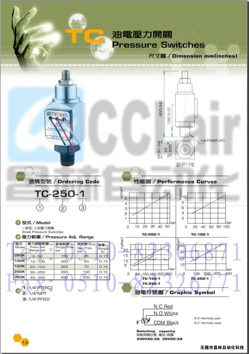詳細信息 TC-100-3,TC-150-1,TC-150-2,TC-150-3,TC-250-1油電壓力開關(guān),臺肯油電壓力開關(guān) ,價格