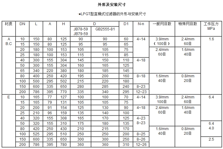 LPGX-15I,LPGX-25I,LPGX-40I,LPGT-40A,LPGT-50A,直桶式過(guò)濾器