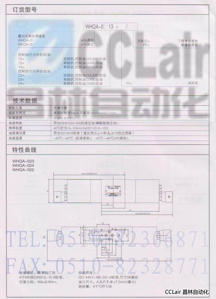 詳細(xì)信息 WHQA-012,WHQA-013,WHQA-014,WHQA-022,WHQA-023,WHQA-024,疊加式單向調(diào)速閥