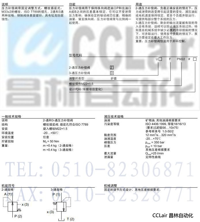 U.FPM22,UDFPM22,UZFPM22,壓力補償插裝閥