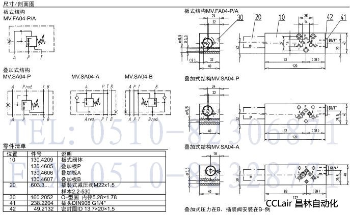 MV.FA04-P/A,MV.SA04-P,MV.SA04-A,MV.SA04-B,先導(dǎo)式減壓閥板式和疊加式結(jié)構(gòu)