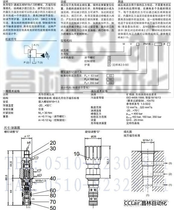 MVSPM18-160,MVDPM18-63,先導(dǎo)式減壓插裝閥