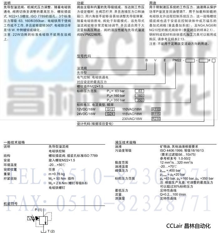 BVEPM22-350,BVEPM22-63,BVEPM22-160,先導(dǎo)式電磁壓力溢流插裝閥