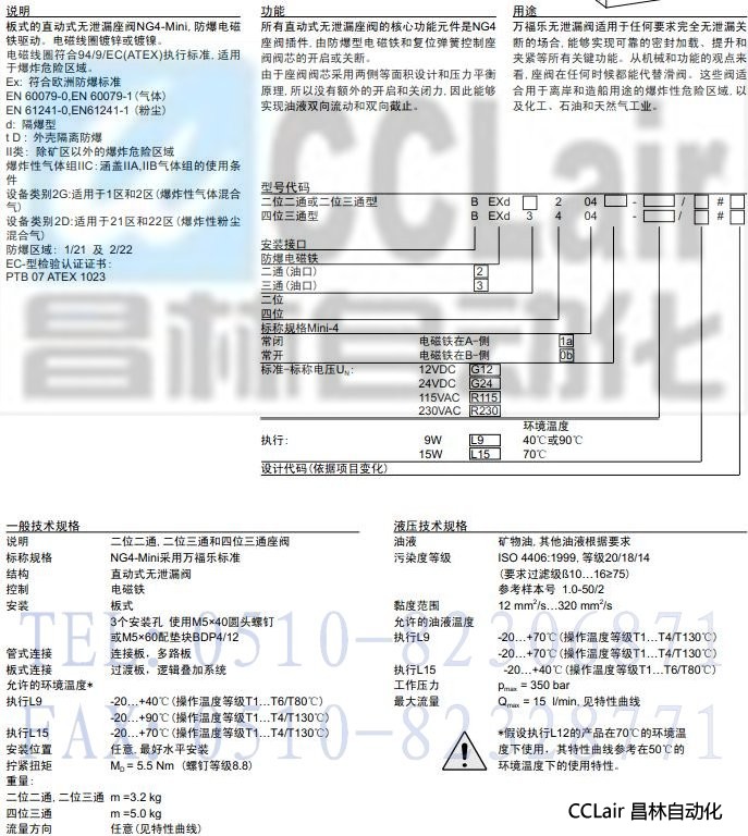 BEXd2204,BEXd22041a,BEXd22040b,板式防爆無(wú)泄漏電磁閥Ex d II C