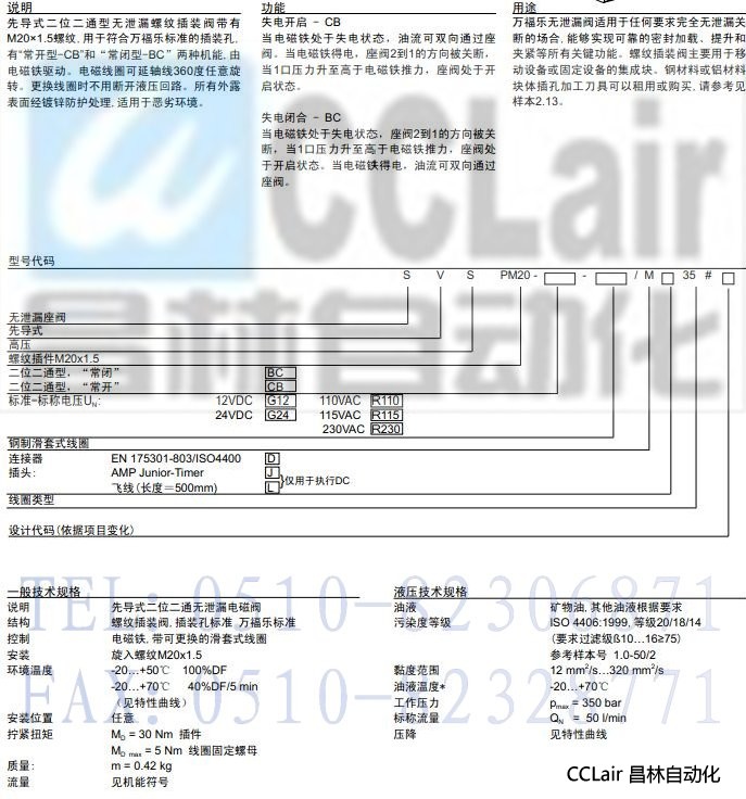 SVSPM20-BC,SVSPM20-CB,先導式插裝式無泄漏電磁閥