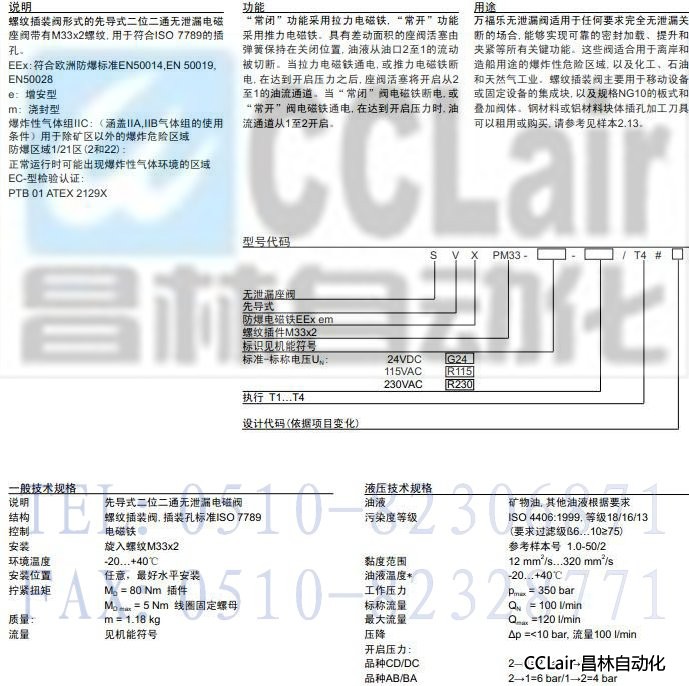 SVXPM33-DC,SVXPM33-CD,SVXPM33-BA,SVXPM33-AB,先導(dǎo)式插裝式防爆無泄漏電磁閥EEx em II