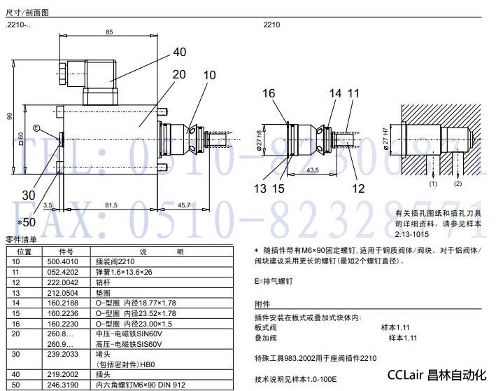 M2210,S2210,插裝式無泄漏電磁閥