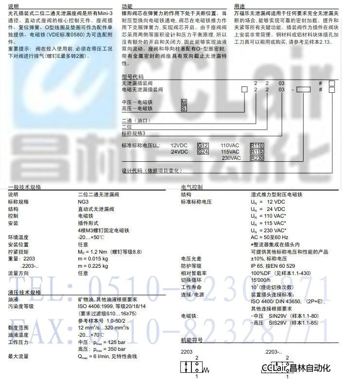 詳細(xì)信息 M2203,S2203,插裝式無(wú)泄漏電磁閥