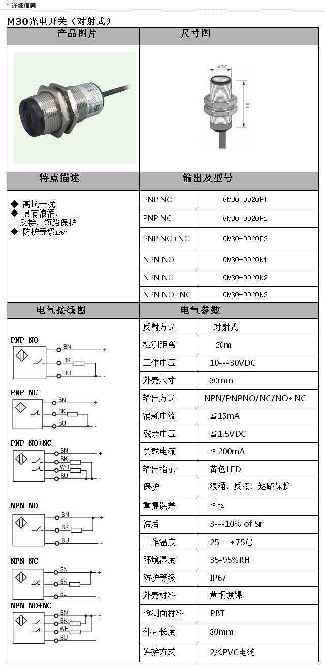 詳細(xì)信息 GM30-DD20P1,GM30-DD20P2,GM30-DD20P3,GM30-DD20N1,GM30-DD20N2,GM30-DD20N3,M30光電(對(duì)射)
