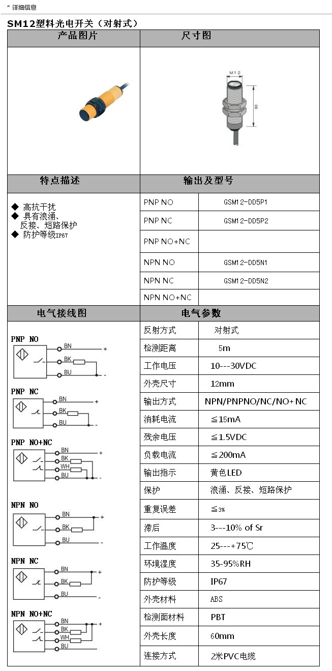 詳細(xì)信息 GSM12-DD5P1,GSM12-DD5P2,GSM12-DD5N1,GSM12-DD5N2,SM12光電(對射)