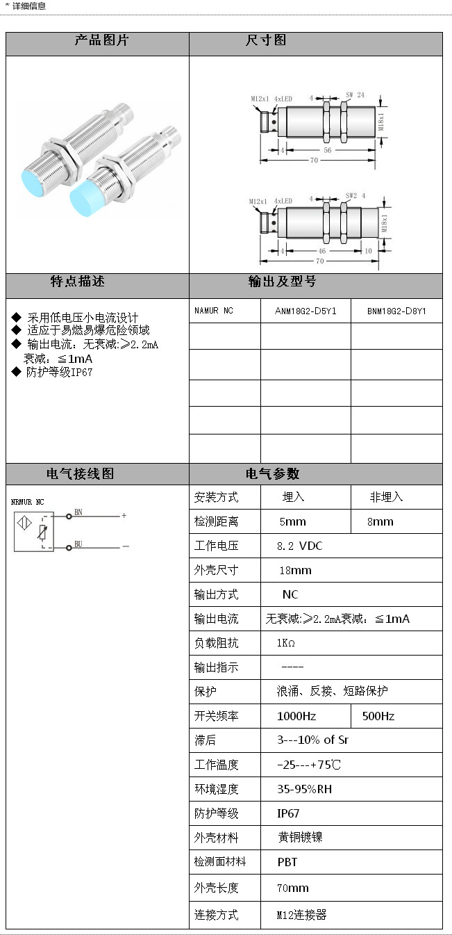 ANM18G2-D5Y1,BNM18G2-D8Y1,接插式M18本安接近開(kāi)關(guān)