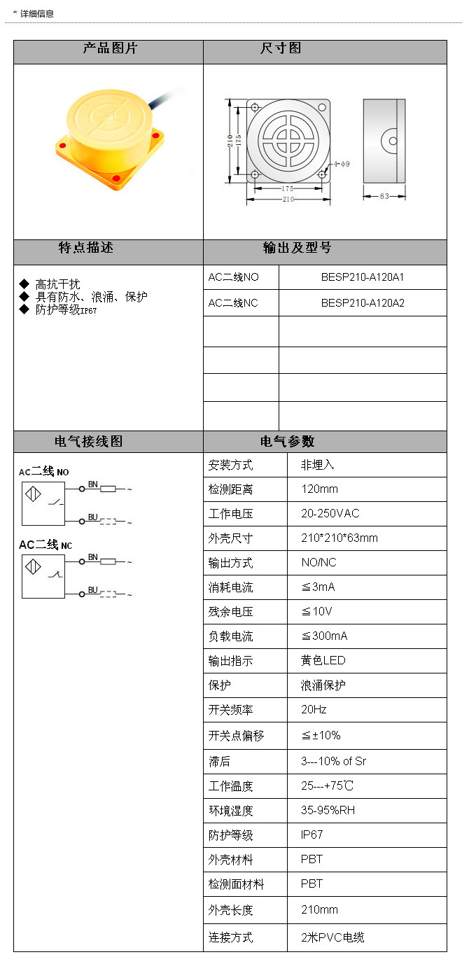 詳細(xì)信息 BESP210-A120A1,BESP210-A120A2,SP210交流兩線