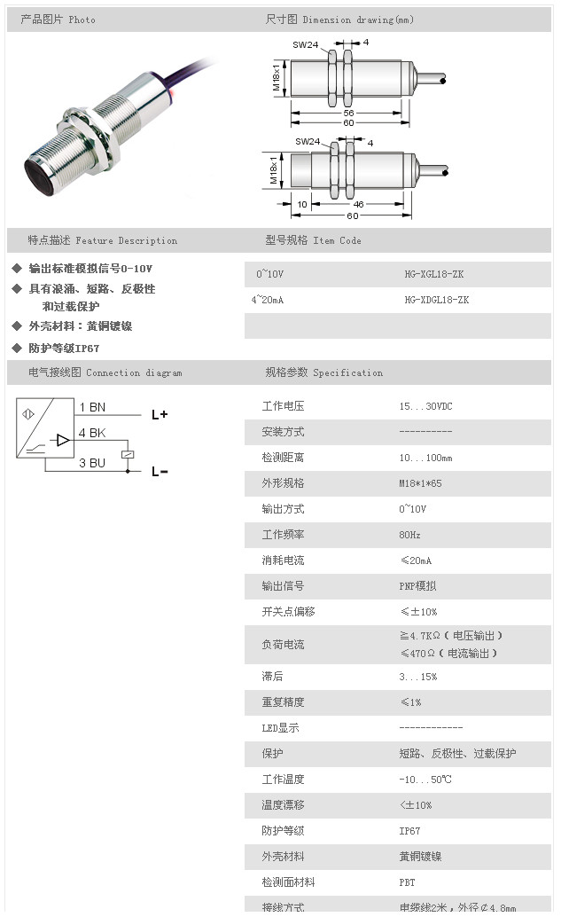 產(chǎn)品: 瀏覽次數(shù):298光電式線性傳感器 HG-XGL18-ZK,HG-XDGL18-ZK,