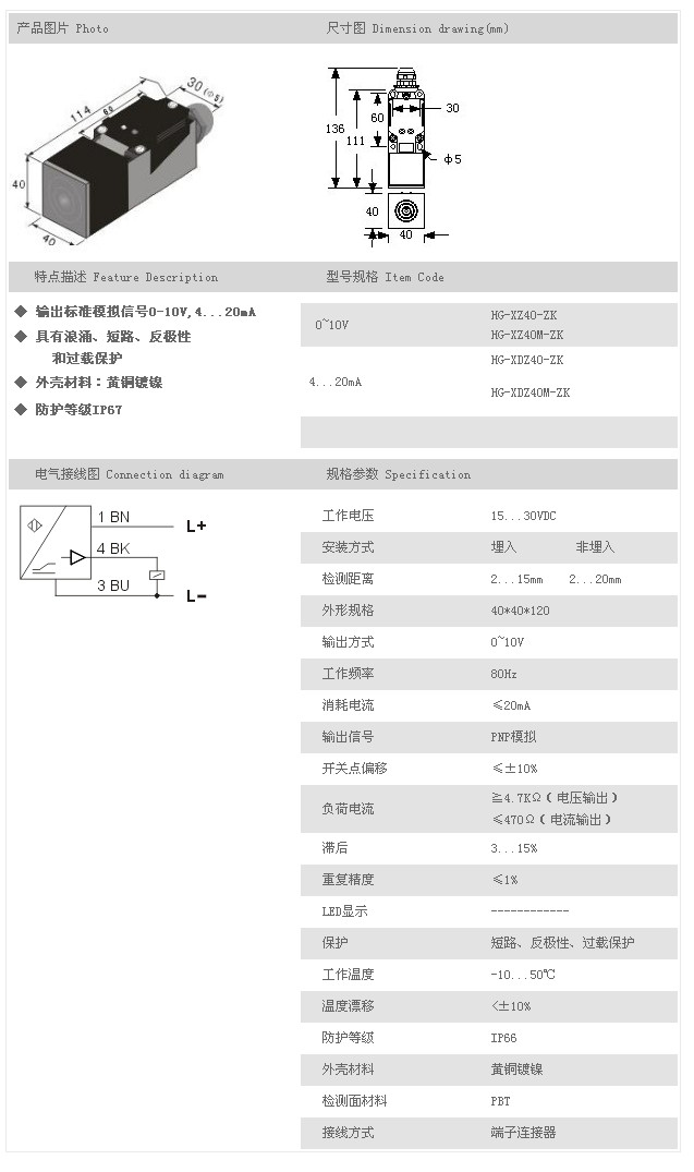 詳細信息 電感式線性傳感器 HG-XZ40-ZK,HG-XZ40M-ZK,HG-XDZ40-ZK,HG-XDZ40M-ZK,