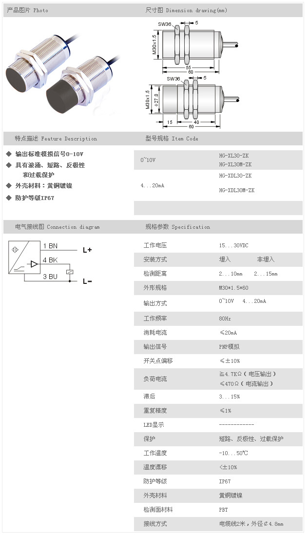 您當前的位置:首頁 » 供應產品 » 電感式線性傳感器 HG-XL30-ZK,HG-XL30M-ZK,HG-XDL30-ZK,HG-XDL30M-ZK,