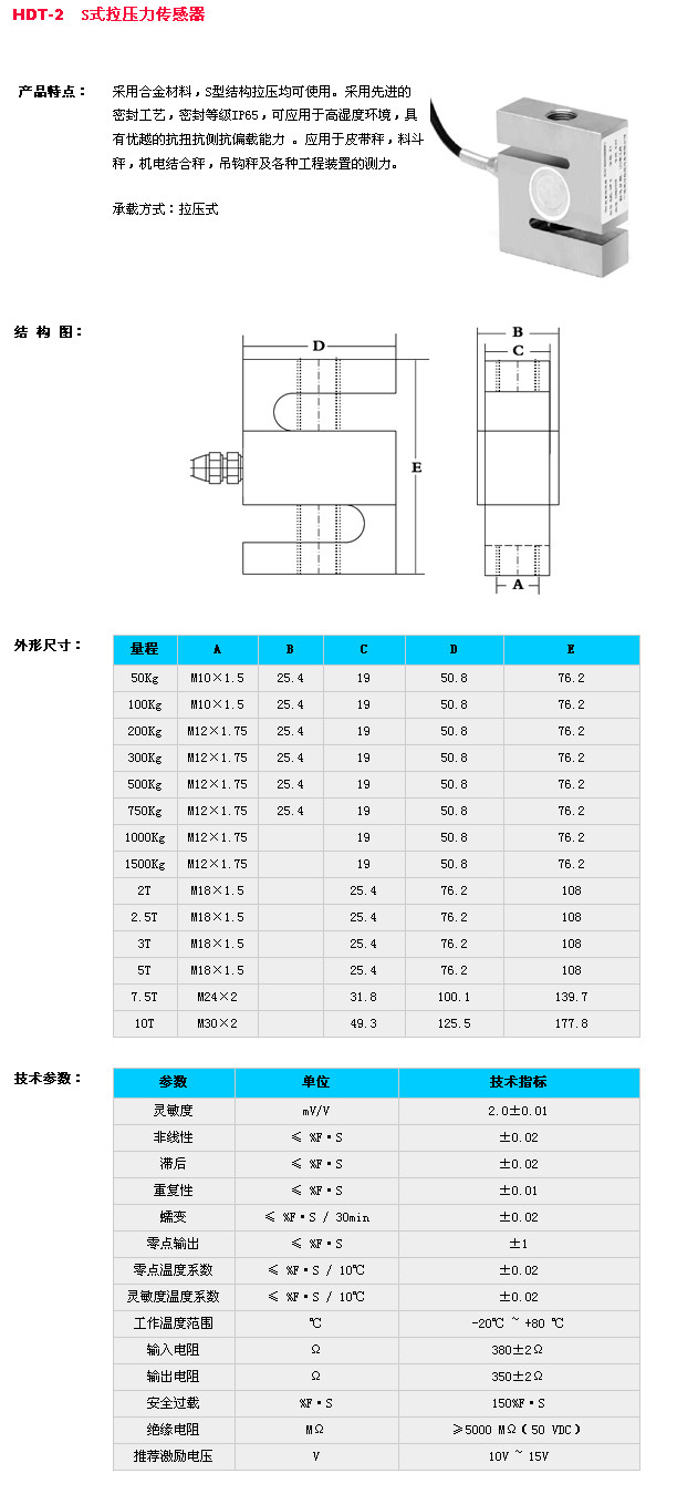 型號(hào): HDT-2,S式測(cè)力傳感器