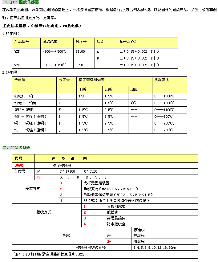 型號: JWC-P1,JWC-P2,JWC-P3,JWC-P4,JWC-K1,JWC-K2,JWC-K3,JWC-K4,JWC,溫度傳感器