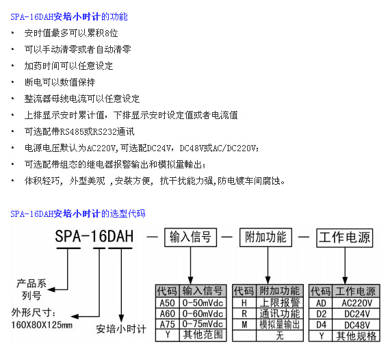 詳細(xì)信息 SPA-16DAH-A50,SPA-16DAH-A60,SPA-16DAH-A75,SPA-16DAH-Y,安培小時(shí)計(jì)