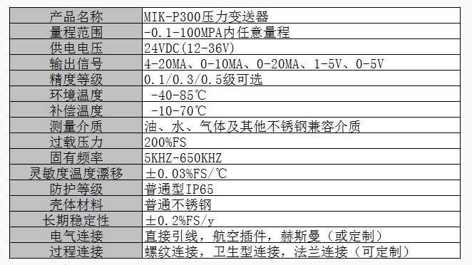 MIK-P300壓力變送器壓力敏感核心采用了高性能的硅壓阻式壓力充油芯體,內(nèi)部的專用集成電路將傳感器毫伏信號轉(zhuǎn)換成標準電壓、電流或頻率信號,可以直接與計算機電路接口卡、控制儀表、智能儀表會PLC等方便相連。遠距離傳輸可以采用電流輸出方式。具有體積小、重量輕、全不銹鋼密封結(jié)構(gòu),可在腐蝕性環(huán)境中工作。該產(chǎn)品安裝方便簡潔,具有極高的抗震和抗沖擊性能。