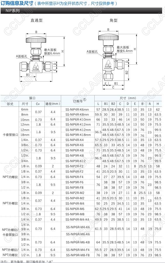 詳細信息 SS-NIP2R-M4-K6-A-SH-P,SS-NI3V-F4-K6-A-SH-P,NIP和NI帽式針閥—不銹鋼管閥件 多種接口形式可供選擇