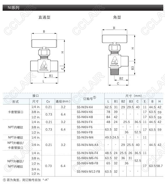 SS-NIP2R-M4-K6-A-SH-P,SS-NI3V-F4-K6-A-SH-P,NIP和NI帽式針閥—不銹鋼管閥件