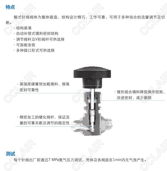 帽式針閥閥體為整體鍛造,結構設計精巧,工作可靠,可用于多種場合的流量調節(jié)及切斷。
