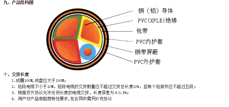 電纜絕緣線芯:1—5芯,標(biāo)稱截面:1.5—300mm2,單芯截面為:1.5--1000 mm2