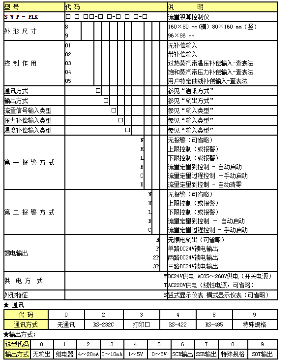 SWP-FLK系列智能流量積算控制儀流量系數(shù)K自動(dòng)演算。它能提供多種狀態(tài)下的質(zhì)量流量積算,如標(biāo)準(zhǔn)體積、質(zhì)量、熱能、流量計(jì)算等。也支持多種補(bǔ)償方式:壓力補(bǔ)償、溫度補(bǔ)償、溫度壓力同事補(bǔ)償。支持過(guò)熱蒸汽、飽和蒸汽計(jì)算等進(jìn)行積累積算。它具有帶定量控制功能。