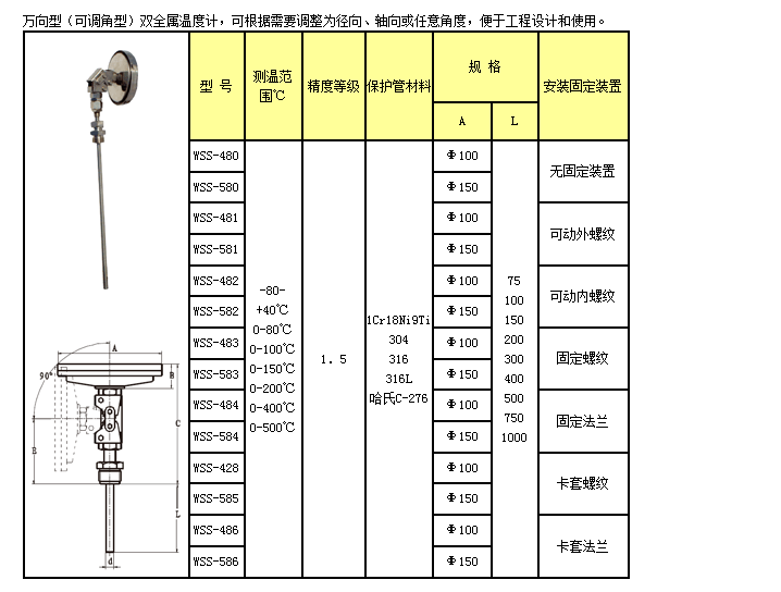 詳細(xì)信息 WSS-480,WSS-482,WSS-484,WSS-486,雙金屬溫度計