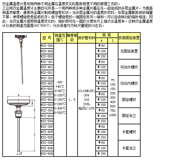 詳細(xì)信息 WSS-300,WSS-302,WSS-304,WSS-306,軸向型雙金屬溫度計