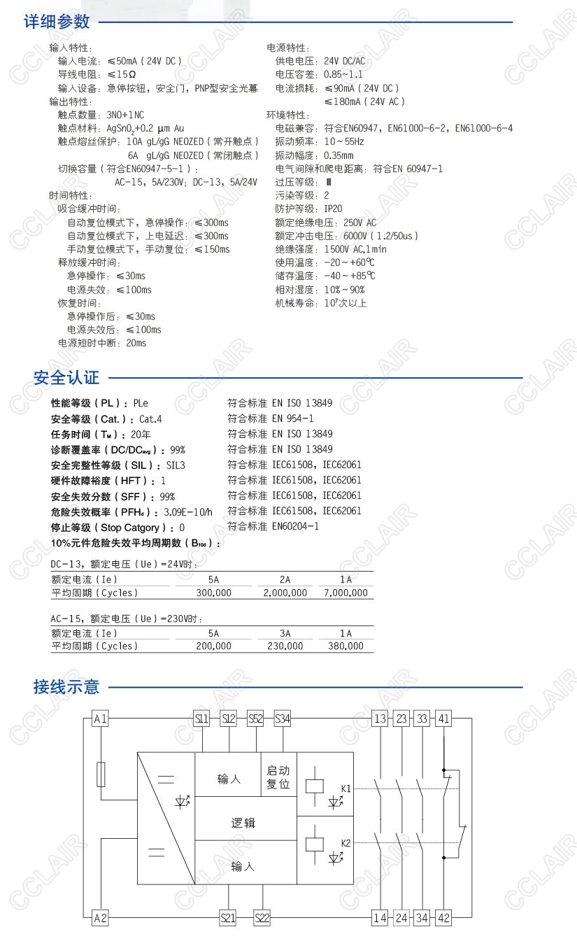 詳細(xì)信息 CZSR8001-3A1B-P 安全光幕輸入安全繼電器