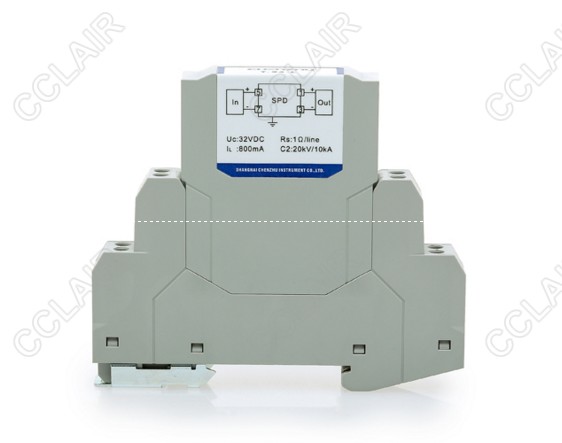 5V信號SPD,三線制、四線制,適用于線對地隔離電壓<500V信號回路,最大放電電流Imax(8/20us):20kA/線,12.5mm超薄,通過DIN35金屬導軌接地。