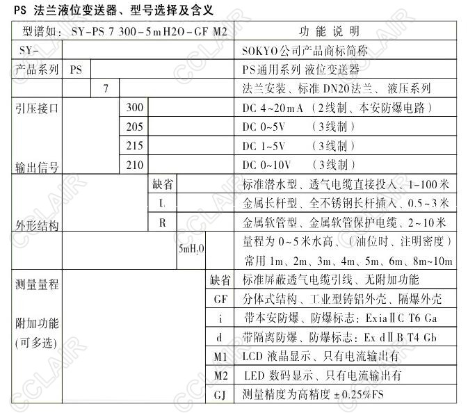 SY-PS7300L-5mH2O-GF,SY-PS7205L-5mH2O-GF,PS7300L-5mH2O-GF,PS7300L桿式法蘭液位計