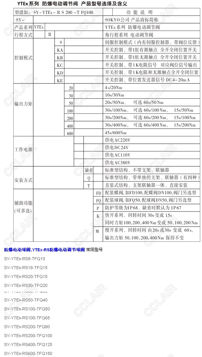 SY-YTEX-RS9-TFQ10,SY-YTEX-RS18-TFQ15,YTEX-RS防爆電動(dòng)調(diào)節(jié)球閥