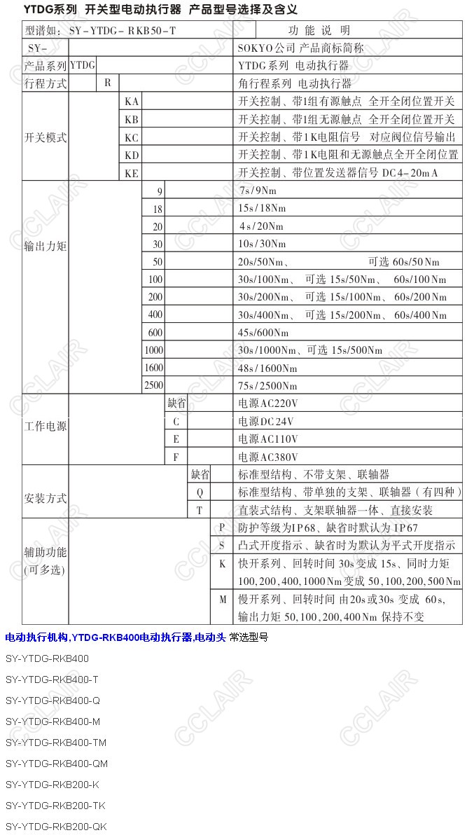 SY-YTDG-RKB400,SY-YTDG-RKB400-T,SY-YTDG-RKB400-Q,YTDG-RKB400電動執(zhí)行器電動頭