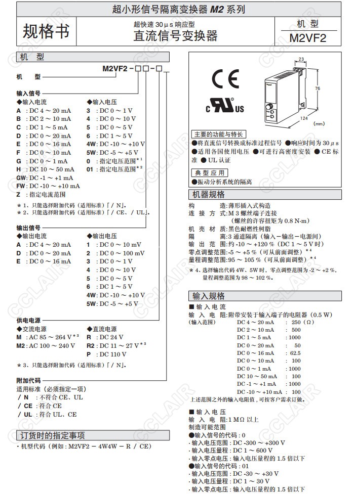 M2VF2,M2VF2-4W4W-R/CE,M2VF2-A,M2VF2-B,M2VF2-C,直流信號(hào)變換器(超快速30us響應(yīng)型)