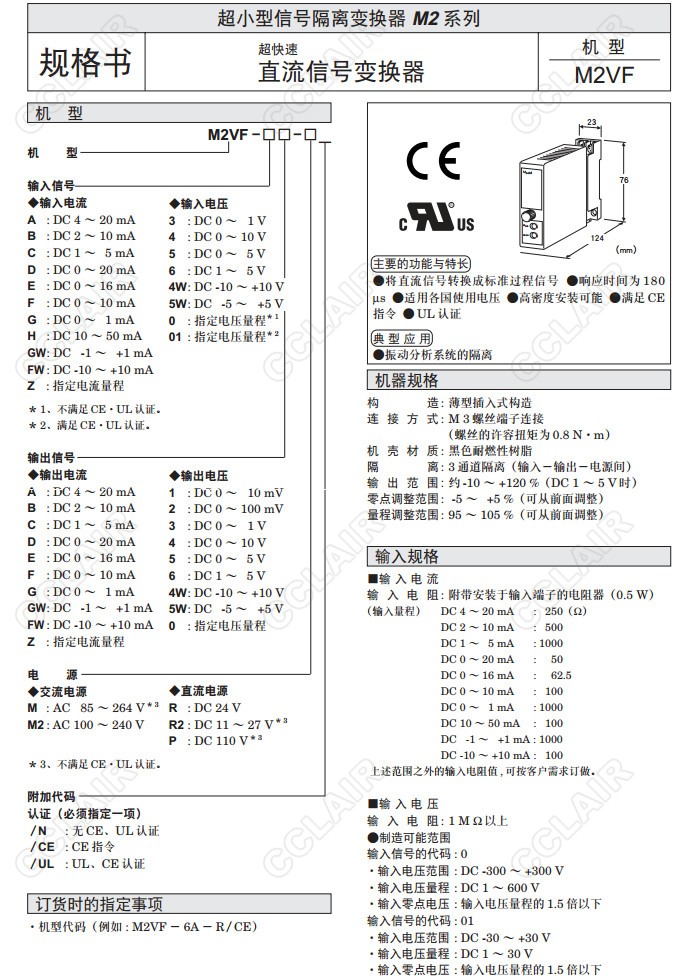 M2VF,M2VF-6A-R/CE,M2VF-A,M2VF-A1,M2VF-B,M2VF-C,M2VF-D,直流信號變換器(超快速)
