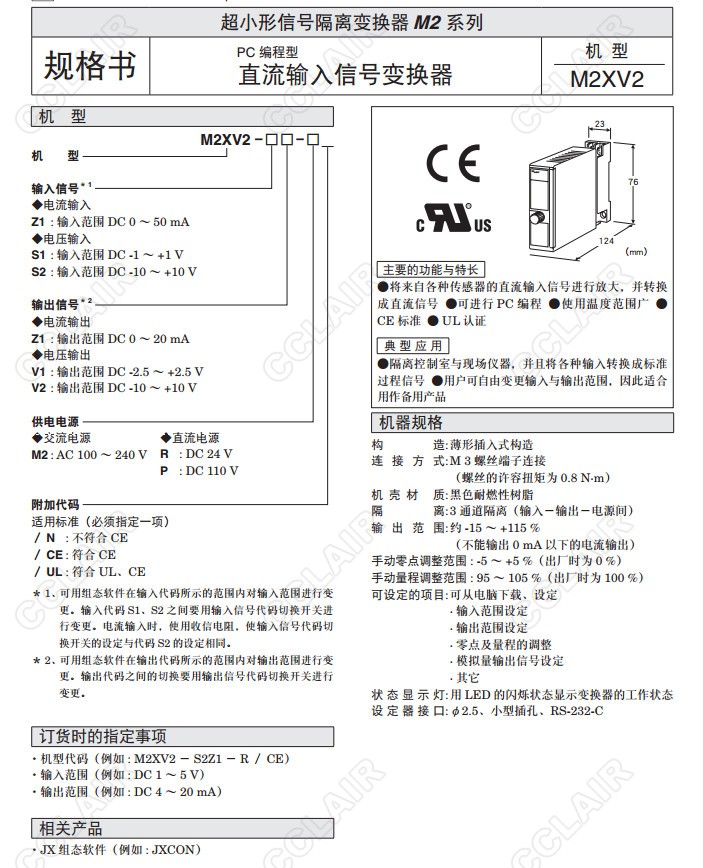 M2XV2,M2XV2-Z1 Z1-M2 /N,M2XV2-S1 Z1-M2 /N,M2XV2-S2 Z1-M2 /N,直流輸入信號(hào)變換器(PC編程型)