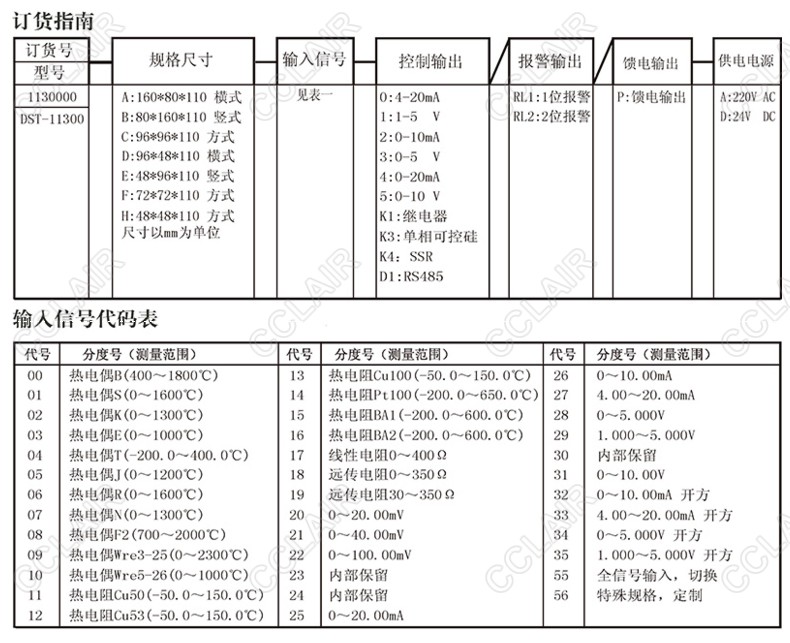 DST-11300系列模糊控制PID調(diào)節(jié)器采用模糊PID算式,傻瓜式操作,0.3級測量精度,7款外型尺寸,可支持33種 信號輸入功能,適用溫度、壓力、流量、液位、濕度等工業(yè)過程量的監(jiān)測,并配合各種執(zhí)行器對電加熱設(shè)備和電 磁、電動調(diào)節(jié)閥進(jìn)行PID調(diào)節(jié)和控制。支持2路報(bào)警功能,支持1路控制輸出或支持采用標(biāo)準(zhǔn)MODBUS協(xié)議的RS485 通訊接口,1路DC24V饋電輸出,輸入端、輸出端、電源端光電隔離,100-240VAC/DC或20-29VDC開關(guān)電源供 電,標(biāo)準(zhǔn)卡入式安裝,工作環(huán)境溫度在0-50℃,且相對濕度5-85%RH無凝結(jié)。