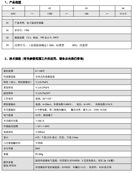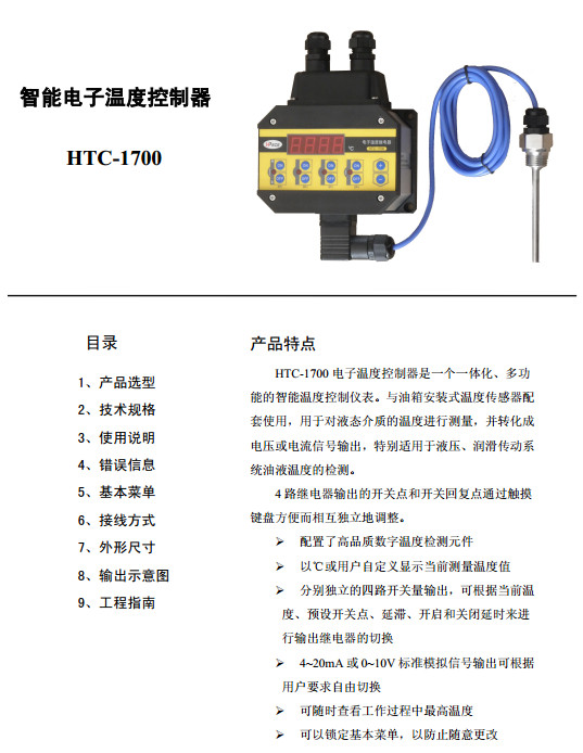 產(chǎn)品: 瀏覽次數(shù):1625HTC-1700-100-000,HTC-1700-100-00X智能電子溫度控制器