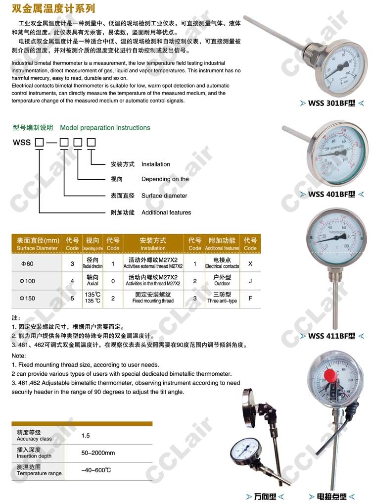 詳細(xì)信息 WSS-301BF,WSS-401BF,WSS-411BF,雙金屬溫度計(jì),無(wú)錫昌林